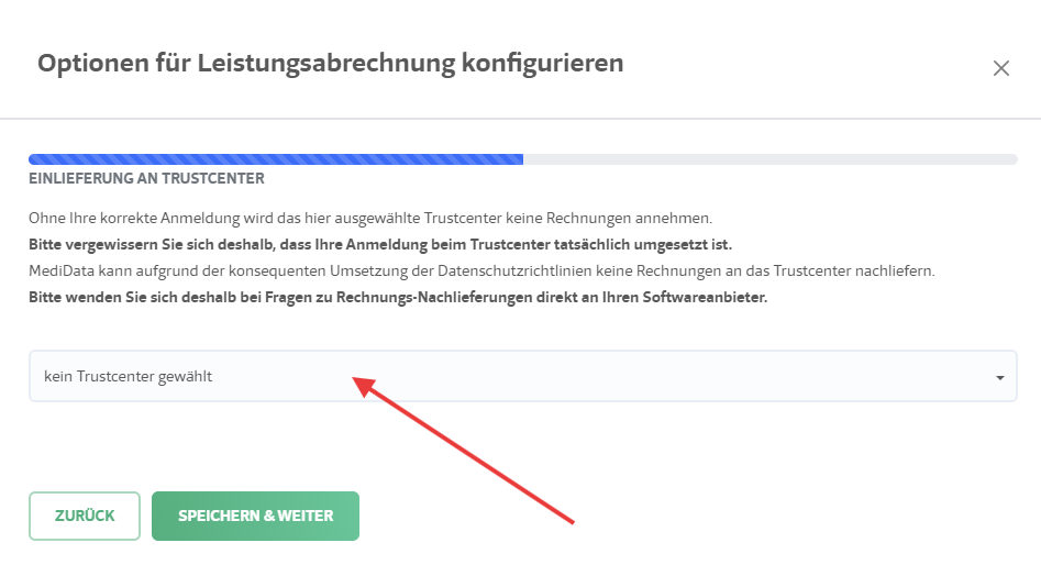 Damit die Tiers-Payant-Rechnungen direkt an das gewünschte Trustcenter übermittelt werden können, kann in MediData bequem die entsprechende Einstellungen vorgenommen werden. In ePrax muss nichts zusätzliches eingestellt werden.